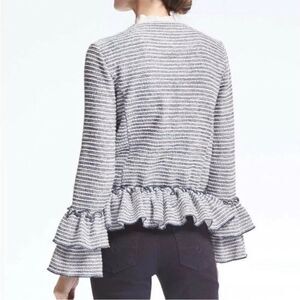 Banana Republic Boucle knit ruffled Assymetrical zip jacket. Size womens 10.