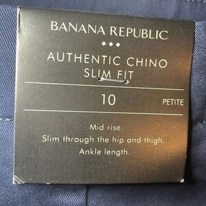 BANANA REPUBLIC Slim Flat Front Chino, Navy Blue, Size 10 Petite, NEW, NEVER WORN, TAGS STILL ATTACHED