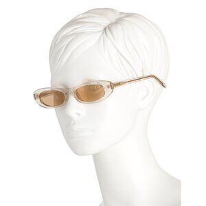 translucent design, gold tone brand logo temple accents, case and cleaning cloth included, case may vary