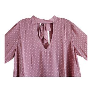 BAND OF GYPSIES Women's Size M Tunic Top - Blush Pink, Swiss Dot, Front Keyhole, Back Keyhole and Tie, 3/4 Sleeve with Bell Cuff, Semi Sheer, Lined, Polyester