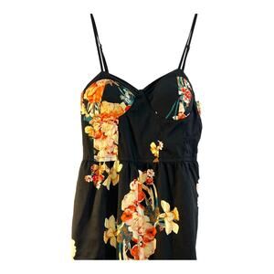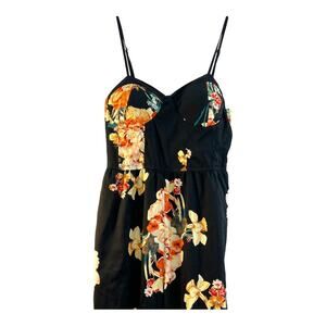 BAND OF GYPSIES Black orange cream teal floral jumpsuit with spaghetti straps SM