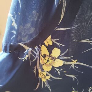 BAND OF GYPSIES Blue Floral Flowy Boho Baby Doll Mini Dress large Festiv…