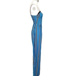 BAND OF GYPSIES Moissanite striped corset wide leg jumpsuit blue black Size XS