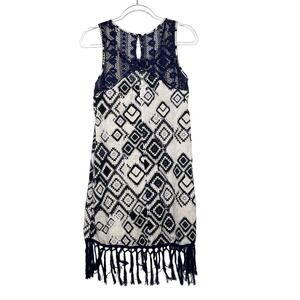BAND OF GYPSIES Tribal Romper Dress Fringed Geometric Pattern White Blue Size S