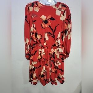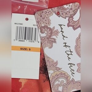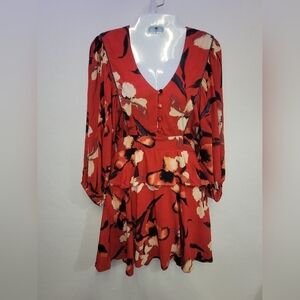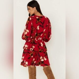New With Tags Band Of Gypsies Band of the Free Dolly Dress Women's Size Small V-neck, button front, long puff sleeves with elastic cuffs, back smocked waistline, mini length, red with floral print, wear with sandals or boots,