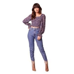 BAND OF THE FREE BOG AGATHE PURPLE IVORY SMOCKED BOHEMIAN CROP TOP NEW