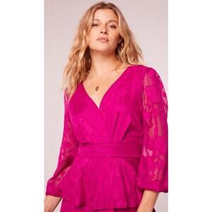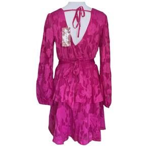 BAND OF THE FREE BOG KISS ME FUSHIA PEPLUM MINI DRESS TIERED FLORAL-SIZE SMALL
