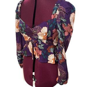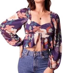 BAND OF THE FREE Floriane Pinch Front Puff Sleeve Crop Top Sweetheart NWT Small