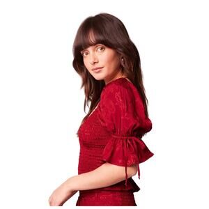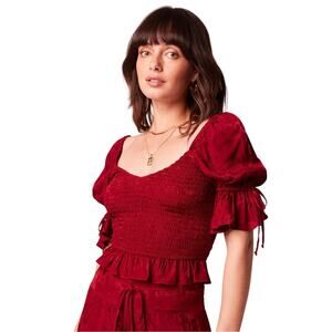 BAND OF THE FREE Lea Rhubarb Smocked Peasant Blouse Peplum Top Red NWT Small