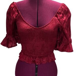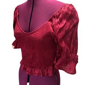 BAND OF THE FREE Lea Rhubarb Smocked Crop Top Peasant Blouse Puff Sleeve NWT S