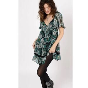 BAND OF THE FREE MAISIE BLACK EMERALD FLORAL MINI DRESS LACE UP BACK S NEW