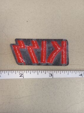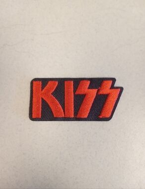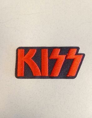 Bold Kiss logo patch with detailed embroidery Vivid red border and black background.