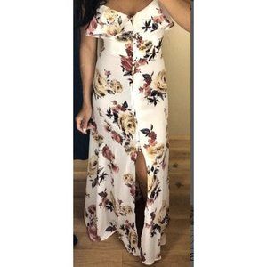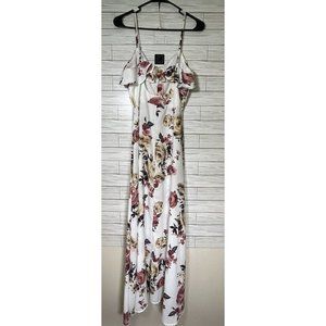BAND of GYPSIES Floral Maxi Dress Split Front Button Down Ruffle Trim Sz Medium