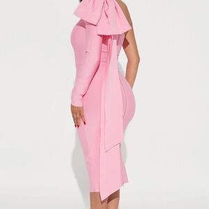 Pretty in pink! Bandage midi dress. Super thick fabric, snatch , gold zipper , well made .