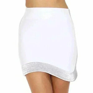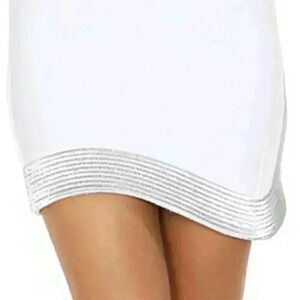 Sexy white bandage skirt with modern silver hemline. Perfect for any occasion!