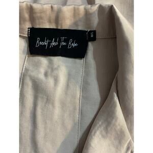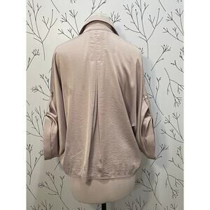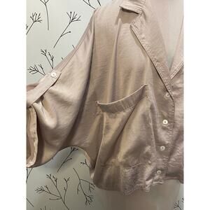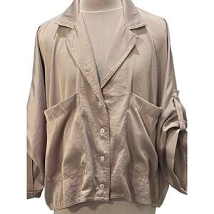 BANDIT AND THE BABE Taupe Button Down Collar Blouse M/L Brushed Satin Pockets