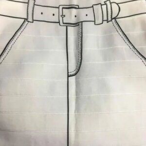 Band of Outsiders skirt in trapunto-stitched tech fabric with tromp l'oeil belt, pockets, and stitching.
