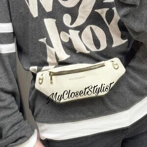 bandolier leather fannie pack gold buckle new rare belt bag adjustable black strap cream