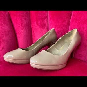 BANDOLINO BEIGE PATENT CLASSIC PUMPS HEELS 9.5M
