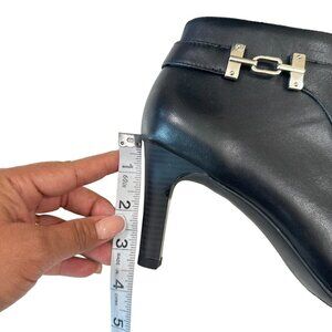 BANDOLINO BOLAPPO Women SZ 8.5M Black Leather Heeled Ankle Booties Fabric Lined