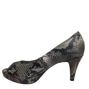 BANDOLINO Bdmylah brown snake print open peep toe high heel pumps shoes size 9 M