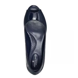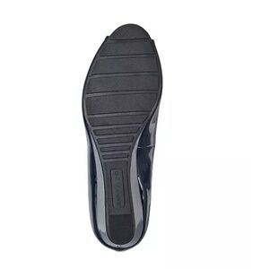 The classic Candra dress wedge by Bandolino features a classic peep design, lifted on a wrapped.