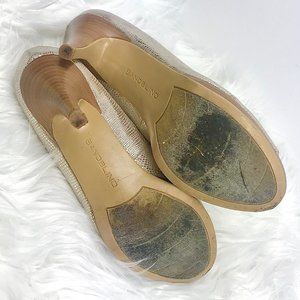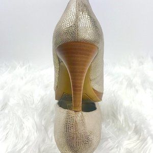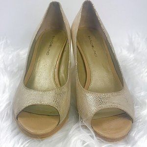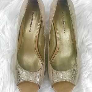 BANDOLINO Myhah Gold Metallic Peep Toe Heels, Sz 6
