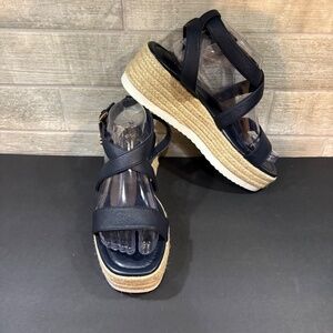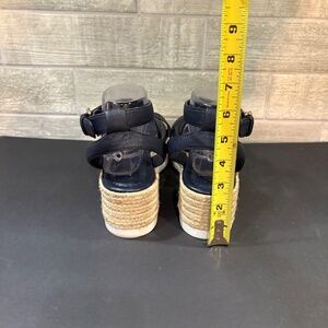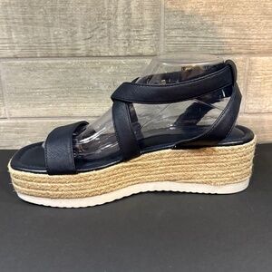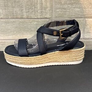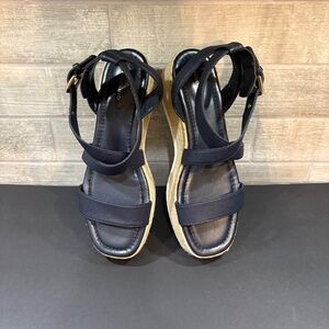 BANDOLINO Navy Logo Woven Padded Major Square Toe Wedge Heeled Sandal 9.5 M