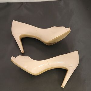 BANDOLINO PEEP TOE HIGH HEEL STILETTOS WOMEN"S PUMP SIZE 91/2M COLOR NUDE THIS this sophisticated peep-toe pump that offers comfort and support with every step  all man-made materials  heel