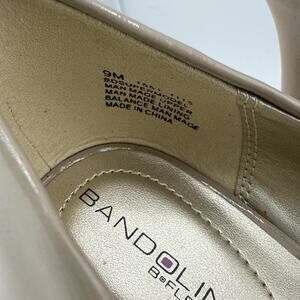 The BANDOLINO Supermodel Platform Peep Toe Vegan Patent Pumps in Beige are stylish and trendy women's shoes with a slip-on design and a high platform heel. These pumps feature a peep toe design, solid color, and are made of synthetic material, making them a vegan-friendly option. With a comfortable fit and a platform style, these shoes from Bandolino are perfect for adding a touch of sophistication to any outfit. Size 9M, brand Bandolino, and model Supermodel make these pumps a great choice for women looking for a chic and fashionable option for their wardrobe.