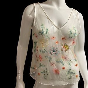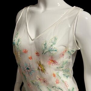 BANDOLINO White Sheer Embroidered Cropped Top size 12