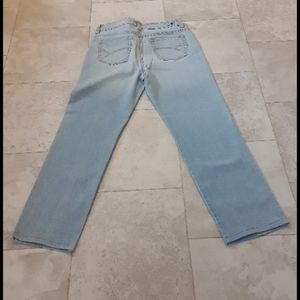 @cnhu9 I looked at the jeans & there isn't any tags or labels inside the jeans. My guess, it's a soft cotton demin, not stiff as a lot of jeans.