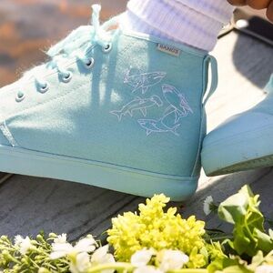 BANGS Canvas Shark Embroidery Mint Green Men’s 5 / Women’s 6.5 High-Top Sneakers