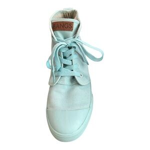 These stylish BANGS shoes feature a durable heavy canvas body, vulcanized rubber sole, and toe cap for lasting wear. A vegan-leather tongue logo adds a unique touch, while the beautiful sky-blue color makes them stand out in any casual outfit.