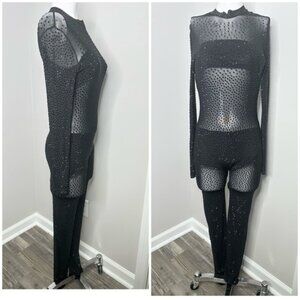 BANJUL BLACK SEE THROUGH RHINESTONE JUMPSUIT- PRELOVED- MEDIUM