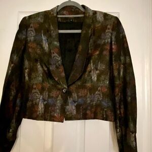 BANU Paris 2 Piece Jacquard Square Neck Dress Jacket Iconic Landmark Print Sz 8