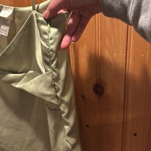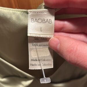 Baobab Selma mini dress with adjustable spaghetti straps and pleated detail at chest. Minor snags, not noticeable and pictured. THIS LISTING IS ONLY FOR THE UNDER SLIP, MISSING THE WRAP PART. Stock photo added for reference.