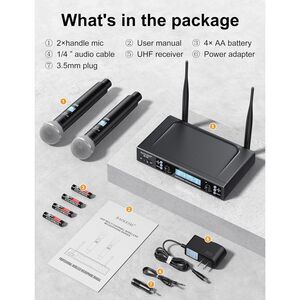 Superior Sound Performance: Our meticulously designed dual wireless microphone system is equipped with top-notch audio technology and pro cardioid dynamic capsule technology. It delivers crystal-clear, pure, and authentic sound for a wide range of events and occasions. Whether it's speeches, singing, or live performances, both you and your audience will be captivated by the unforgettable audio experience provided by this microphone system.