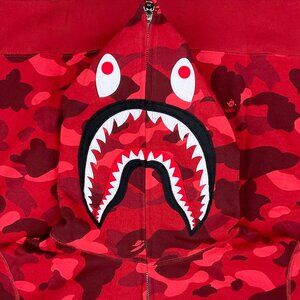 BAPE Color Camo Shark WGM Hoodie Sweatshirt Red | A Bathing Ape