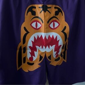 BAPE Purple Tiger SHORTS sz M Bathing Ape Japan Polyester Elastic Waist
