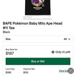 BAPE - SS21 Baby Milo x Pokemon Ape Head #11 Tee - Medium - Black - Used