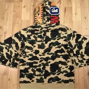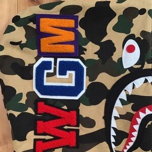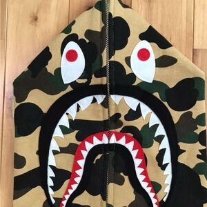 Iconic BAPE hoodie with shark design. Features a bold camo pattern. Full zip closure. Comfortable and stylish.