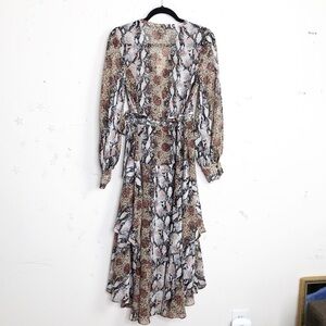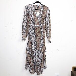 Bar 111 Blua & Tilly Multisnake print wrap dress, with tiered layers 100% polyester.
