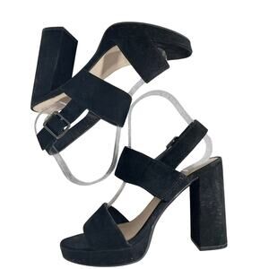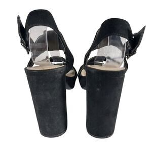 BAR III! BLACK VEGAN SUEDE MICROFIBER CHUNKY HEEL STRAP & BUCKLE SANDALS! SZ 7M