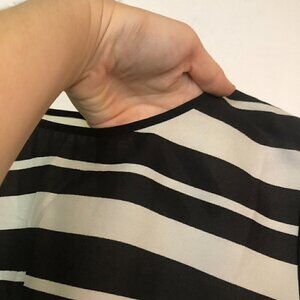 BAR III Black Cream Stripe 3/4 Sleeve High Low Hi-Lo Polyester Sheer Blouse Top