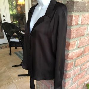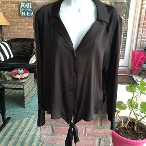 BAR III Black Dressy Button Up Tie Blouse Macy's Medium EUC