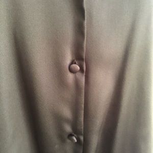 For your consideration: a black silky feeling button up tie waist blouse in size medium from Bar III. Purchased at Macy's for an event, it has been worn once and is now waiting for another spin out on the town. Constructed of 100% polyester, it also features long sleeves with buttons, a v neck, covered black buttons, a tie waist (that can be untied and french tucked if you prefer, and a collar. Its a very pretty and versatile piece. Laying flat armpit to armpit measures approx. 20"; armpit to cuff is 18" and top of shoulder to hem is approx. 23" in the front and from middle of collar in back to hem is approx, 37" Coming from a nonsmoking home and I thank you for looking!