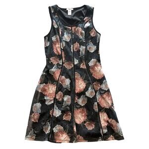 BAR III Bodycon Sheath DRESS Black Lined Floral Mesh Small Mob Wife Sleeveless