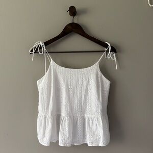 BAR III EYELET PEPLUM TANK TOP WITH SPAGHETTI STRAP TIES WHITE SIZE MEDIUM EUC