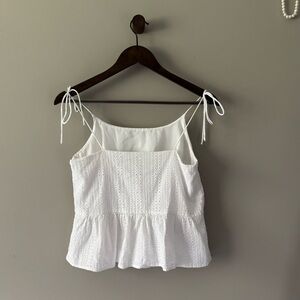 BAR III EYELET PEPLUM TANK TOP WITH SPAGHETTI STRAP TIES WHITE SIZE MEDIUM EUC